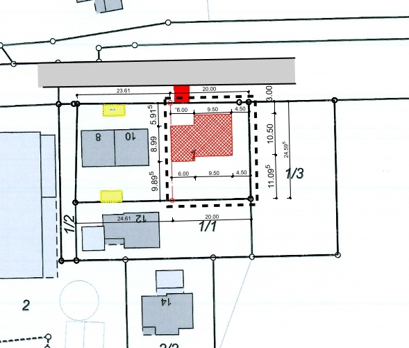Im Kaufpreis enthalten ist eine Baugenehmigung für ein Einfamilienhaus mit einer Größe von ca. 10,5 × 9,5 m, sowie zwei Garagen. So können Sie ohne lange Vorlaufzeit in Ihr Bauvorhaben starten.